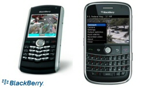 Find Home and Business CCTV Security camera systems that support remotely viewing your security cameras over the internet from your BlackBerry PDA phone. We have several types of systems, including a standalone DVR that streams video through the included app, or a more advanced PC-based DVR that provides remote viewing through an app that allows viewing live streaming video and even playback right from your BlackBerry.