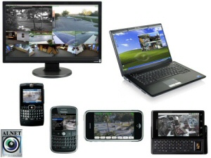 The Alnet PC-Based DVR and NVR (IP Camera) recording software offers the best quality and features for remote viewing capabilities. These systems can be used to monitor your home or business security cameras over the internet even when you have a dynamic IP dsl or cable internet connection and can be easily configured to provide remote viewing from a PC, Laptop, iPhone, iPad, iPod Touch, Android phones, Blackberry phones, Windows Mobile PDA phones, and any Java or Symbian enabled cell phones. Most of these CMS client softwares can provide live viewing of your cameras as well as playback of video from the server, control of PTZ cameras, control of inputs and outputs on the server and more. The PC client software can be adjusted to provide great real-time video even with slower internet connection speeds by reducing quality to adapt to your internet connection. These same remote client software applications work both with the traditional security cameras with DVR card/software as well as the Alnet Netstation NVR software for IP Cameras and MegaPixel IP cameras.